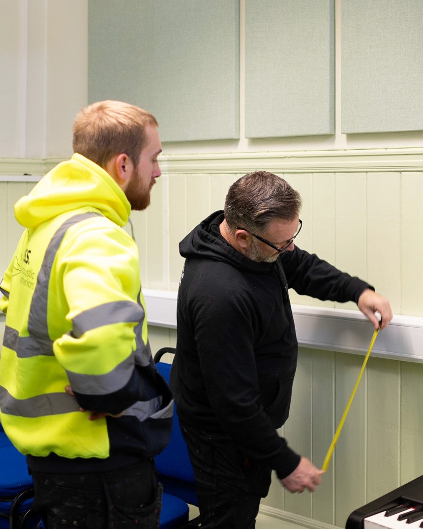 Every project begins with an on-site acoustic consultation to assess the space, its use and the acoustic issues present. We evaluate the room, surface materials and problem areas to understand how sound behaves within the environment. This allows us to define clear performance requirements before any treatment is specified.